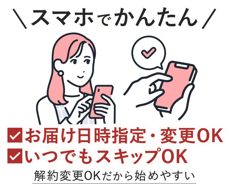 ※初回商品の到着後より解約が可能です。解約をご希望のお客様は、お買い上げ明細書に記載されている次回発送予定の10日前までにお電話(0120-006-996/営業時間9:00~18:00※土日祝日を除く)もしくはLINEまでご連絡ください。